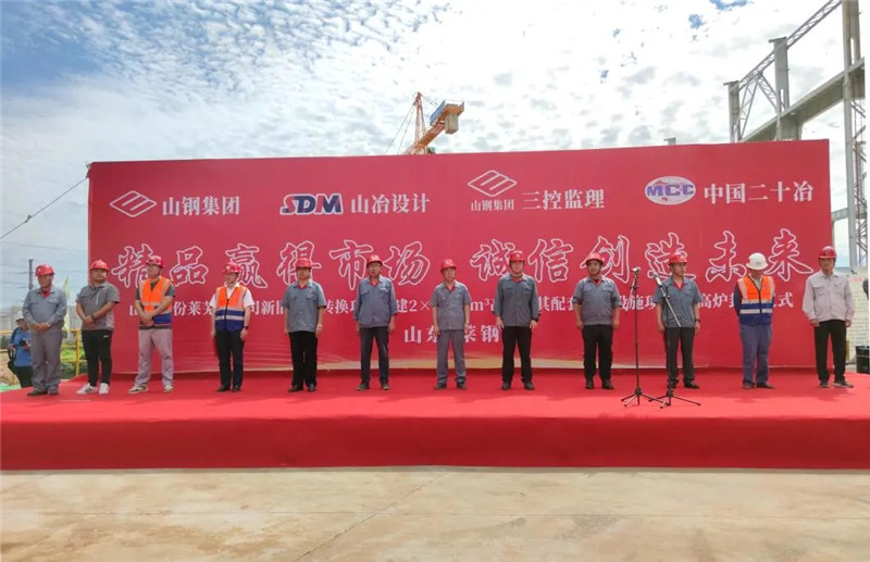 2020年8月25日,由山冶設計總承包的山鋼股份萊蕪分公司1#3800m3高爐工程舉行爐殼封頂儀式。山鋼股份萊蕪分公司新舊動能轉(zhuǎn)換項目工程指揮部副總指揮李綱、副經(jīng)理田慶元,煉鐵廠經(jīng)理、高爐工程項目經(jīng)理部經(jīng)理張明,新舊動能轉(zhuǎn)換項目工程指揮部高爐工程項目經(jīng)理部常務副經(jīng)理賈友劍及施工、監(jiān)理等相關(guān)單位領導出席了儀式,山東省冶金設計院股份有限公司黨委書記谷卓奇代表總承包單位發(fā)表講話。