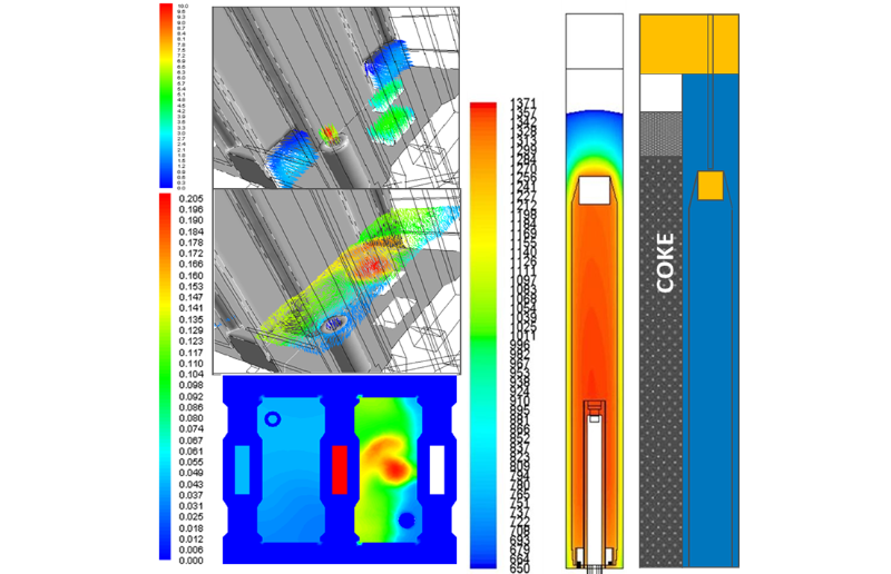 采用FAN火焰分析模型,模擬焦?fàn)t燃燒室燃燒狀況,優(yōu)化焦?fàn)t爐體及加熱系統(tǒng)設(shè)計(jì),保證爐體高向加熱均勻性,降低煉焦耗熱量,減少氮氧化物和上升管根部石墨的產(chǎn)生。